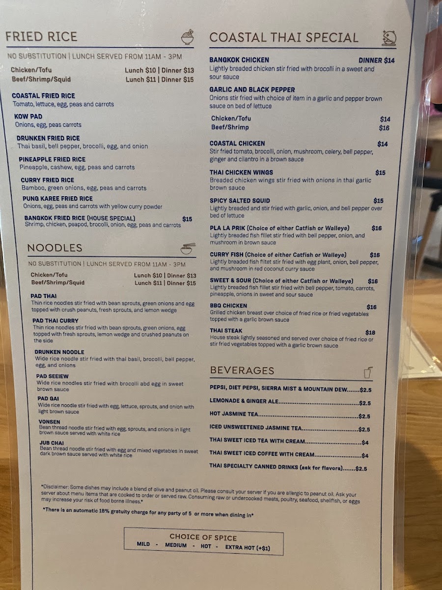 Discover the Irresistible Delights of the Coastal Thai Menu